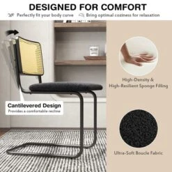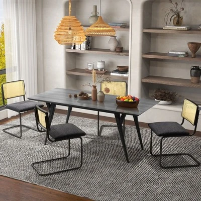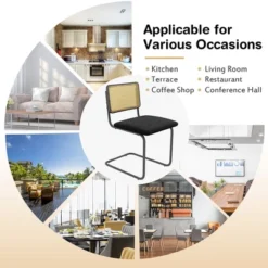 Costway Dining Chairs Set Rattan Upholstered Dining Chairs With Cane Back&Metal Base