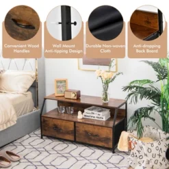 Costway Dresser TV Stand Media Console Table Organizer W/2 Storage Drawer & Open Shelves