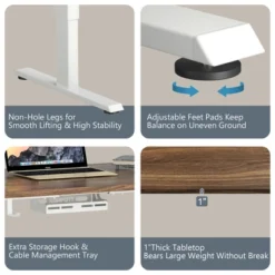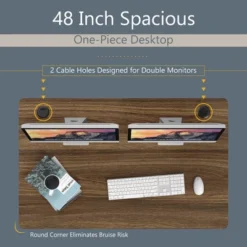 - Spacious One-piece Tabletop: Roomy working area space effectively improves working efficiency. Spacious desktop can accommodate monitor, laptop, mouse, books and many other office supplies. It is also designed with 2 cable holes for clutter-free environment. Besides, the cable management tray and hanging hook free up more desktop surface and bring much more storage convenience.