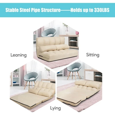 Compared with the conventional sofa design, this floor sofa has made a breakthrough and featured a foldable design. What’s more, with a premium steel frame inside the sofa, the backrest can be adjust at 6 positions within 90°to 180°, which allows it to transform from sofa into bed. Without leaning against the wall at the back, it is still strong enough to support your body. The bearing capacity is up to 330 lbs. Just to invite your family or friends to enjoy the beautiful time with you!