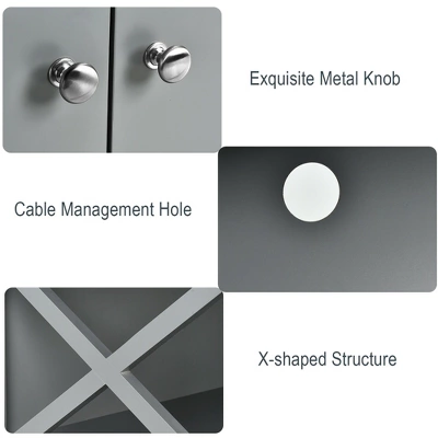 - Ample Storage Space: Featuring a spacious tabletop, shelf and 2 doors, this premium TV stand comes with large storage space to put various items, such as DVD players, books, ornamentations and other belongings. Besides, the cable management hole is easy to organize your power cord for tidy and clean.