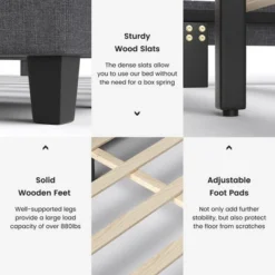 - Stylish Modern Style: The gray linen fabric bed frame creates a modern and comfortable atmosphere. Its elegant look complements any decorating scheme. There is no doubt that it will add sophistication and breathe new life into any bedroom.