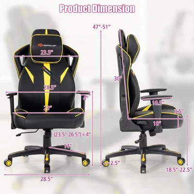 - User-friendly Details: Fitted with great 2D adjustable armrest which can swivel 20° on each side and has a vertical height adjustment of 3”. Additionally, the noise free leather features attracting yellow pattern and fine stitching.