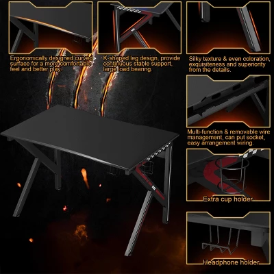 Our gaming desk is specifically designed for your gaming gear and pleasure so you can concentrate on your gaming battle. The sleek MDF laminated desk top provides ample room for your monitor, keyboard, laptop and your supplies. The gaming table is specifically designed with a rock-solid K-shape construction to enhance the stability and durability. Especially, our gaming desk comes with plenty of added convenient features to help you have a better gaming experience. Such as, the under-table cup and rear power strip holders to save your gaming space. Are you still hesitating about such a perfect desk? Or are you still wondering which table to choose? Heartbeat as action and take it home! Super easy to clean and convenient assembly required. Don’t hesitate to add it to your cart!