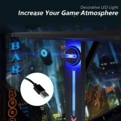 - Ergonomic Racing Style Table: The desk has ergonomic curve in the front side, which allows you to get much closer to monitor. The arm support area is large enough to ensure comfortable using experience. Turn on LED lights with USB connection to enjoy exciting gaming atmosphere!