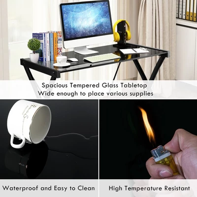 - Spacious Thickened Tempered Glass: Made of thickened tempered glass, the tabletop is heat resistant and high strength, providing a powerful support for your items. Spacious tabletop perfectly accommodates both your laptop and computer and various supplies can also be allowed to place on it, giving you a large area to work on it.