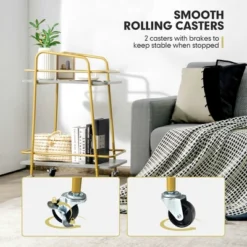 - 2-tier Shelf for Storage and Display: This mobile serving cart can maximize vertical storage while occupying small space, making your kitchen look more organized. Besides, 2-tier open shelf facilitates the placement for a variety of kitchen and dining essentials, such as dishware, kitchenware, spice jar, food, etc.