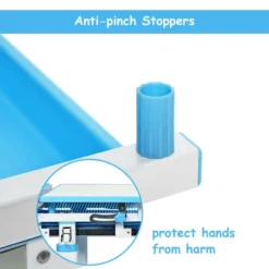 • Tilted Desktop with Anti-pinch Stopper: The desktop can be tilted in the range of 0-40 degree, meeting different needs of angle for writing, reading, drawing and so on. Besides, this desk is equipped with anti-pinch stoppers to prevent hands from being pinched when kids rotate the desk.