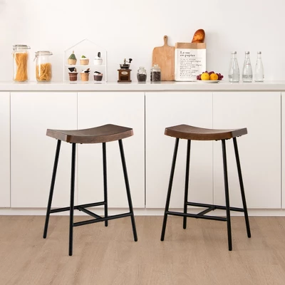 Except for industrial appearance, our bar stool also provides great comfort and excellent stability. The 16” x 10” saddle seat is slightly curved to fit human hip, so you will feel more comfortable after long-time sitting. Plus, each bar stool features an A-shaped iron frame fitted with adjustable foot pads, which ensures high load capacity of 330 lbs. There is also a 7” high footrest where you can stretch feet comfortably. According to actual needs, you can place each bar stool in the kitchen, cafe, restaurant, party room and more places.