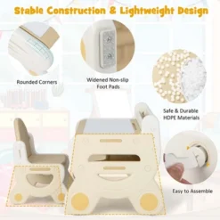 Costway Kids Drawing Table & Chair Set For Reading Playing With Pens & Blackboard Eraser Blue/Brown
