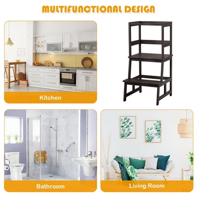 - Multifunctional Step Stool: Our toddler kitchen step stool can help your kids stand safely to a higher place, so as to learn cooking skills. In addition to being used as a step stool, it can also be used as a shelf where you can put flower pots or other sundries on it. In addition, kids can also sit on the pedal to read or study.