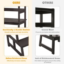 We use environmentally friendly and durable bamboo to make this step stool, and carefully coat the surface with a smooth and non-toxic coating. The opening height of 16” is convenient for children to climb up and down easily. And the widened pedal can provide a spacious and comfortable standing place for the baby. In addition, we added reinforced beams at the bottom to improve the stability and reinforcement of the entire step stool. More importantly, you don’t need to clean our step stools regularly, just occasionally wipe them with a damp cloth. Do not hesitate to buy it now!