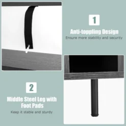 Costway Kitchen Islands Freestanding Wine Rack Table W/ Glass Holder & Drawer Black / Rustic