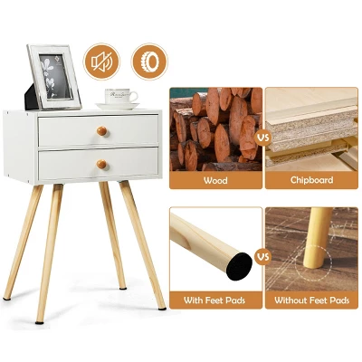 - Mid Century Nightstand: This nightstand with mid century style creates an atmosphere of elegance and gracefulness. Simple nightstand will match with every decor and add functionality and elegance in any room with a minimalist design. Blend with white and natural, the simple nightstand is classic.