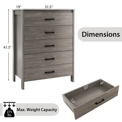 - Versatile 5-Drawer Dresser: With elegant appearance and large storage capacity, the storage chest is a good choice added to your modern home decorations. It is suitable for bedroom, living room, closet, nursery and entryway.