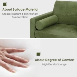 - Perfect Modern Loveseat: Our loveseat provides you with a perfect place to sit and rest, meeting all your daily needs of sitting activities. And it is covered with crease-resistant and skin-friendly army green fabric for comfort.