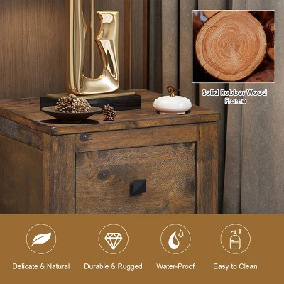 - Solid Rubber Wood Frame:Selected rubber wood applied to the nightstand frame. The overall wood structure provides optimized strength that makes it sturdy and durable. Additionally, four rugged feet is designed to ensure stability and not easy to shake.