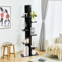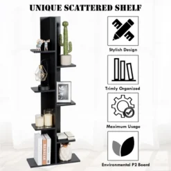 This elegant 7 tier open concept display shelf with modern open concept design and durable construction, is very stable and sturdy .The zig-zag style fixed storage shelves not only can decorate your room ,but also can display your favorite decorative items. You can place it in your living room, bedroom ,office etc. It is a good ornament that let your room full of fashion sense. Don’t hesitate to buy it now !