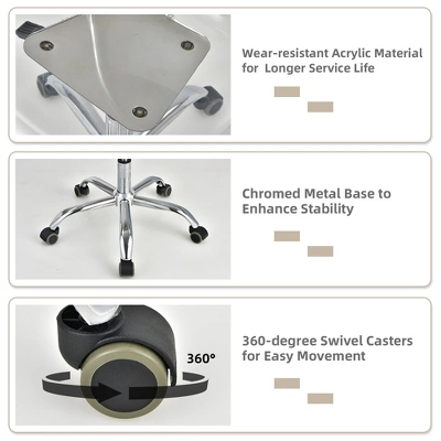 Highlight your home and office with this stylish yet practical desk chair! High quality acrylic material combines high toughness, hardness and wear resistance all into one, which also takes you less time in daily maintenance. The office chair enables long hours sitting experience with a sense of comfort, whether you want to work, read, or make-up. Besides, the lifting lever makes it easier to adjust the seat to your desired height while the ergonomic backrest helps you alleviate back fatigue after sedentary working. In addition, the smooth rolling casters realize convenient and quiet movement. This ghost chair is the perfect choice for home and office that shows great taste.
