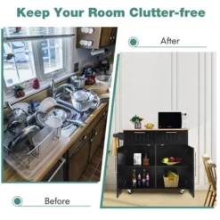 Costway Rolling Kitchen Cart Island Heavy Duty Storage Trolley Cabinet Utility Black - Image 2