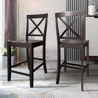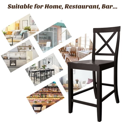 Our dining chairs will give you a wonderful dining experience!Made of premium rubber wood, these chairs are stable and durable for a long lifespan. Ergonomic curved backrest with X-shape frame offers strong support for your spine. And wide seat effectively distributes the pressure to provide a more comfortable seating feeling. You can put your feet on the raised bar and enjoy afternoon tea at leisure. With simple and elegant style, these dining chairs will add a touch of fashion to dining room, office, restaurant, etc.
