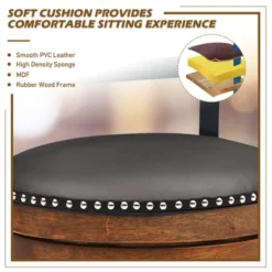 Our rustic swivel bar stool will provide you with a comfortable place to sit while adding a touch of elegance to your room layout. Made of selected rubber wood, this bar stool is durable and sturdy. The four thick flared legs with a built-in foot ring provide strong support and ensure their stability. Featuring 360-degree swivel design, this bar stool gives you the freedom of flexible movement, so you can communicate with others in any direction. Besides, PVC cushioned seat is comfortable to sit. You can put your legs on the footrest and enjoy leisure time. With its rustic appearance, our bar height stool is perfect for bistro, kitchen, coffee house, etc. Don’t hesitate to buy it!