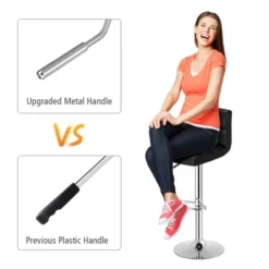 The kitchen counter adjustable bar stool will provide you with comfortable sitting experience, long-lasting service time and reliable support. Benefitting from upgraded metal lift lever, you can easily adjust height at will without much effort. Thickened and elastic sponge filled in the cushioned seat is soft so that you can sit on the bar stool for long time while feeling less fatigue. Compared with other ordinary bar stool, the 360° swivel adjustable chair with backrest can extremely improve comfort and bring much more fun to you. Meanwhile, sturdy frame ensures superior durability and sturdiness to support you firmly. Plus, rubber ring on the bottom can not only protect floor during moving but also enhance stability in stationary.
