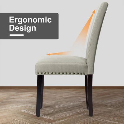 - High Density Sponge & Linen Fabric: These 2 dining chairs are filled with high density sponge to offer optimal softness and elasticity. And serpentine spring under the seat make chairs more resilient. Besides, covered with breathable linen fabric, these dining chairs will provide maximum comfort.