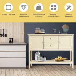 Are you bothered by the messy but essential items in your home? This wooden sideboard is your perfect choice!