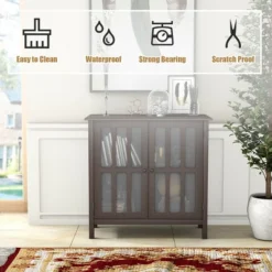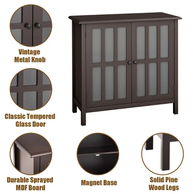 Our new Wood Storage Cabinet is an ideal combination of elegance and functionality. This unit features brown finish, and modern& Stylish style design. Constructed of high quality, non-toxic MDF material, this cabinet is sturdy and reliable. This functional storage cabinet has 2 tempered glass doors that open to two shelves for versatile storage .The classic brown paint on the contemporary furniture will surely compliment any room decor. It will be your excellent choice to buy, don’t hesitate and buy