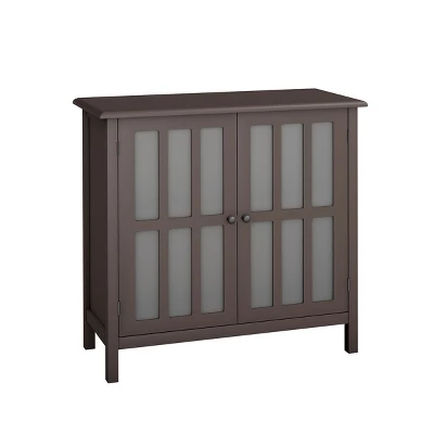 Functional storage cabinet has 2 tempered glass doors that open to two shelves for versatile storage
