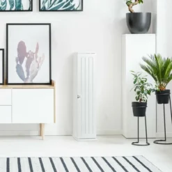 Our tissue cabinet is your ideal tool to store different items, which provides you with sufficient storage space. Top slot and hinged door make it easy to use. Besides, 3 unfixed shelves enable you to freely arrange storage space according to your needs. Space-saving design creates a small floor footprint. Apart from that, made of sturdy MDF, the tissue cabinet is stable and durable. The cabinet with modern and simple appearance is suitable for any room in your house. In addition, smooth surface simplifies the cleaning process. With the help of our detailed instruction, you can assemble it quickly in a few steps.
