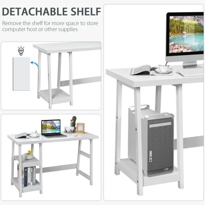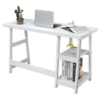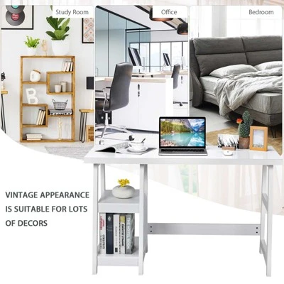 Constructed of high-quality materials and a sturdy frame, this desk ensures durability and stability. The spacious tabletop and 2-tier open shelves provide perfect storage and display functions, making everything within reach. And it could be used as a computer desk, writing table, workstation, etc. It’s easy to assemble with all hardware and instructions delivered. The simple and vintage look allows it to complement various decoration styles and is suitable for a variety of occasions. No matter where it is placed, this table will be an eye-catcher!