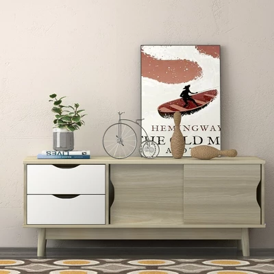 Our accent 47.5” TV stand with large storage space is the perfect piece to give your living space a charming addition.Thick tabletop features superior durability and resistance, plus solid rubber legs ensure stability and great load capacity. Equipped with 2 sliding drawers and one large storage cabinet, this TV stand removes visual clutter. Besides, the rear cable management hole can tidy the messy wire. The spacious tabletop fits flat screen TVs up to 60” and can also be a display place to put paintings, vases and plants. This stylish TV storage stand can be put in the living room, bedroom, lounge, etc. Come to take one, and you can sit with your family in front of the TV stand to enjoy the leisure time together.