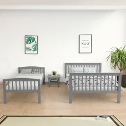 This versatile twin over full bunk bed will highlight your home. Solid wood ensures the stability of bunk bed and durable material can stand the test of time. Wide dense boards and high guardrail structure can provide enough safety for children. In addition, our space-saving bunk design only takes up little space, which leaves more room space for the children to play. The stylish appearance is perfect for dorms, apartments, children’s rooms, etc. The high quality material is easy to clean and you can use it by easy installation. What are you waiting for? Our twin over full bunk bed is what you are looking for!