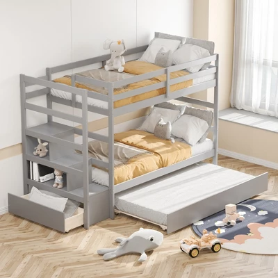 - Maximum Storage Space: Underneath the staircase, there are two open compartments where you can place books, decorations, toys and more items. At bottom, the twin bunk bed comes with a mobile deep drawer for quilts, bed sheets, kid clothes and so on. Ample storage space will create a neat room.