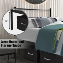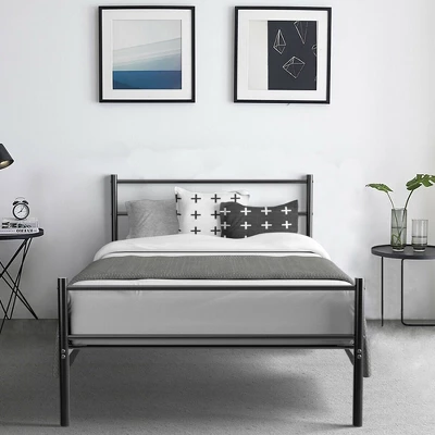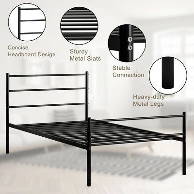 Costway Twin Size Metal Bed Frame Platform Mattress Foundation W/ Headboard Black