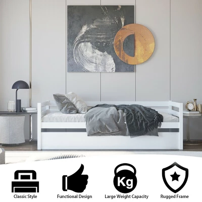 Costway Twin Size Trundle Daybed Wooden Slat Support Mattress Platform For Kids EspressoWhite