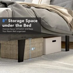 - Flexible Storage & Easy Assembly: 8” under bed space makes it easier to store box, suitcase and other idle things, which also brings much convenience to clean the room.All parts and components are tightly wrapped.The bed frame is easy to put together under the guidance of instruction.