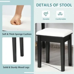 Costway Vanity Table Set With Lighted Mirror Adjustable 10 Bulbs Dresser 4 Drawer