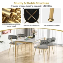 Costway Velvet Dining Chair Set Of 2 Upholstered Modern Accent Chair With Woven Back Grey/White