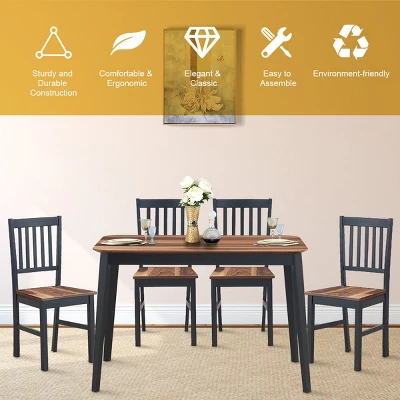 This set of four dining chairs is perfect for decorating your dining room and offering you a wonderful dining experience. This modern dining chair will enhance the attractiveness of any living area .With rubber wood legs, it is strong enough for a long-term serving time. Featuring the 100 degree angle between seat and slat back, the wide seat effectively distributes the pressure to offer a more comfortable seating. An eye-catching fresh look to your dining room.