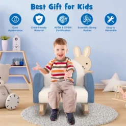 Costway Kids Sofa Chair W/ Ottoman Toddler Single Sofa Velvet Upholstered Couch GreyPink