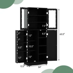 Costway Tall Storage Cabinet Kitchen Pantry Cupboard With Tempered Glass Doors & Shelves Black/White