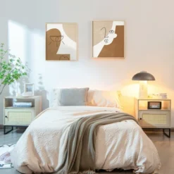Costway 2PCS Nightstand With Drawer Accent Side End Table Storage Cabinet WhiteNatural