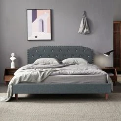 Costway Twin/Full/Queen Size Bed Frame Platform Slat High Headboard Bedroom Rubber Wood Leg