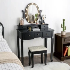 Costway Vanity Table Jewelry Makeup Desk Bench Dresser Stool